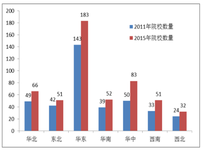 图10 2011-2015年新开设专业地域分布情况