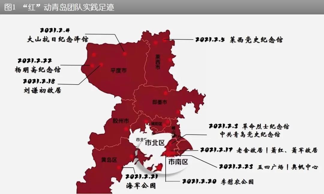 调研前期,团队针对青岛全市设计了红色旅游方案并展开实践活动。红色旅游方案主要包括重温党史——纪念馆藏文化之旅、致敬先贤——英雄故居缅怀之旅、舒展新颜——社会新风教育之旅,目的在于从宏观角度学光辉党史到微观角度听先辈事迹,由青岛的革命旧貌到城市新颜,层层递进学习党史、增强信念。