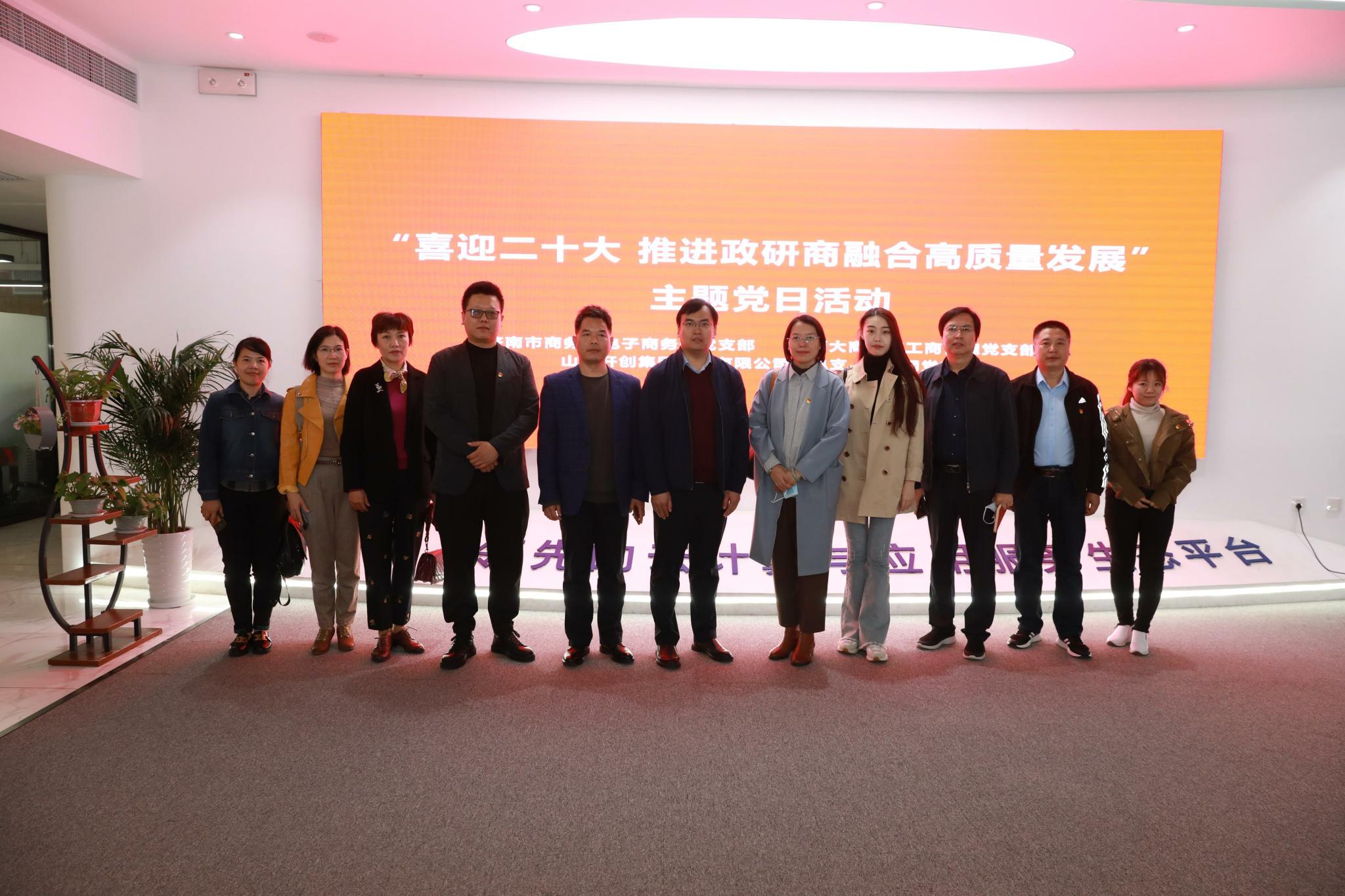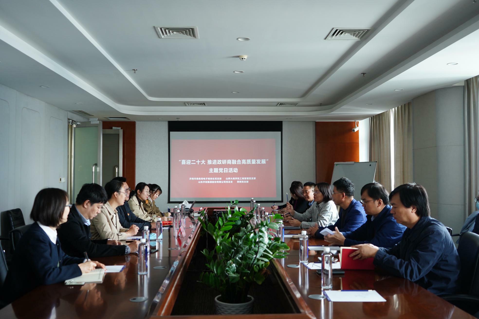 为迎接党的二十大胜利召开,充分发挥党支部战斗堡垒作用,10月13日,365英国上市工商管理党支部联合济南市商务局电子商务处党支部、山东开创集团党支部、舜网党支部共同开展了“喜迎二十大,推进政商研用融合高质量发展”主题党日活动。