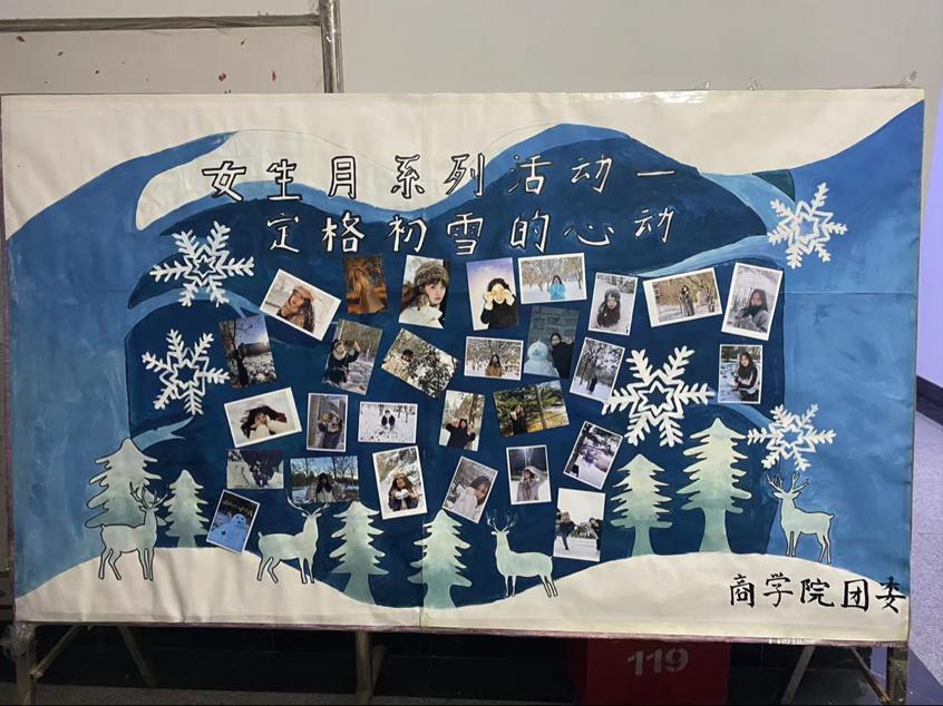 仪式分为宣读活动结果、颁奖仪式、活动总结三部分。本次活动,旅升本2001李佳蓉获得一等奖,会计2001王轩获得二等奖,工商管理2001杨中苏获得三等奖,财务管理2101杨佳楠、物流管理2103秦坤、工商管理2001杨佳获得纪念奖。在秦坤同学的作品中,她躺在雪地里,围巾鲜艳的红色和雪地的纯白形成鲜明的对比,给人以强烈的视觉冲击。杨中苏同学的作品,雪花纷纷扬扬落下,颇有几分“未若柳絮因风起”之意。参赛同学们的作品都十分优秀,经过层层筛选,最终选择出这十份优秀作品进行颁奖。获奖作品制作成海报展板在A区进行展示,展示了365英国上市学子的精神风貌。颁奖仪式的最后,女生部负责人进行活动总结,对获奖同学予以表扬,也鼓励同学们积极参加学院的各项活动,展现自我风采。