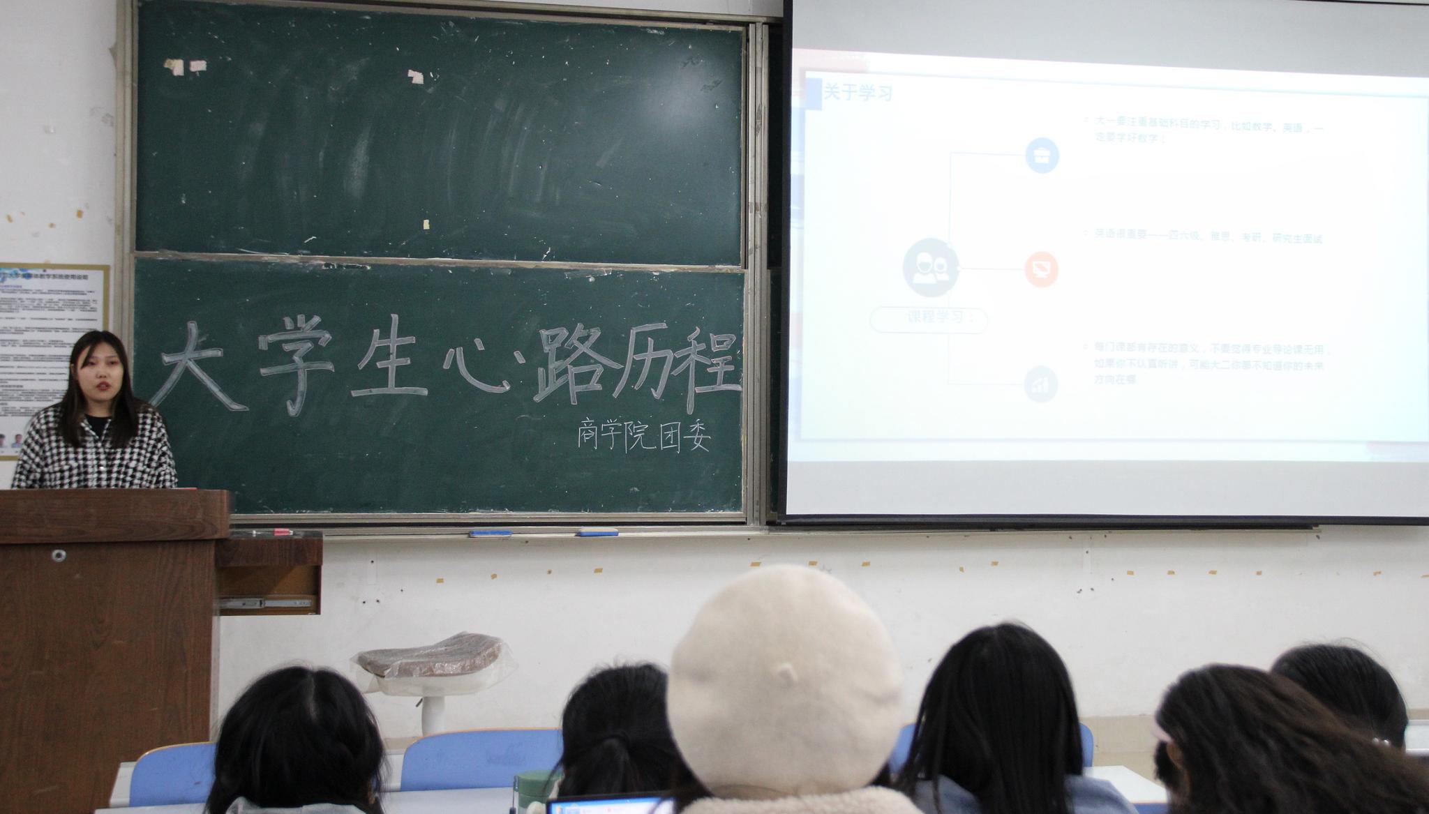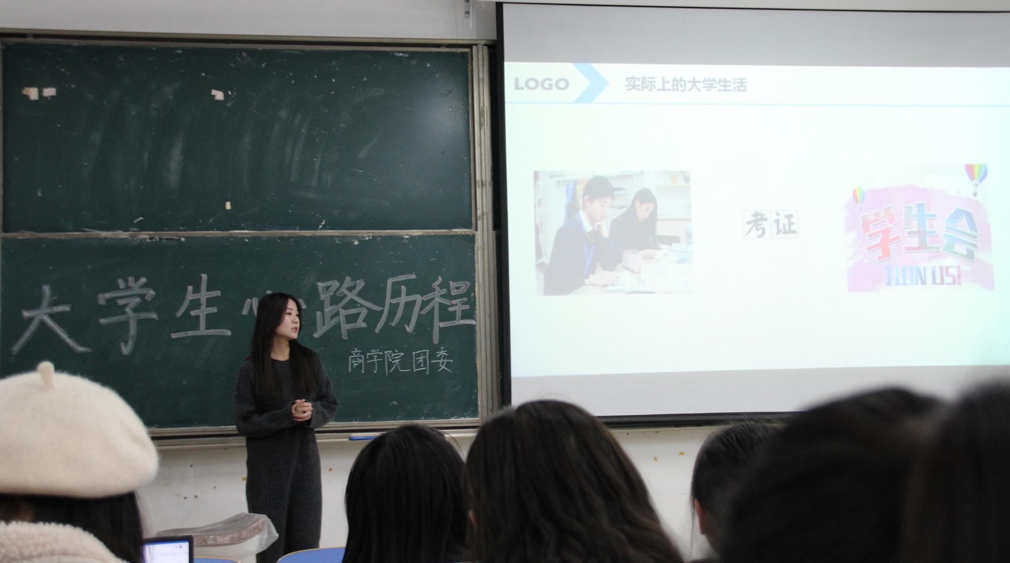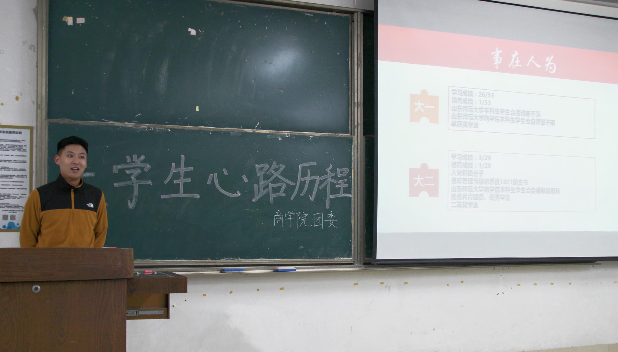 为加强大一新生对大学生活的认识,帮助其更好地完成高中与大学的过渡。10月16日,365英国上市于长清湖校区文渊楼C区218教室举办大学生心路历程讲座。院前学生会副主席王志全、学生会主席武飞扬、学生会秘书长徐俊洁担任讲座主讲人,2021级100余名学生积极到场聆听。