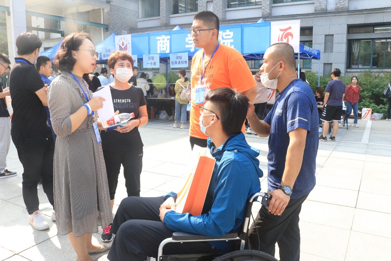学院的迎新工作处也处处彰显出爱与关怀,志愿服务者们全程一对一服务新生报道,贴心地向新生们讲解报道流程以及各种注意事项,学院也为新生家长们提供了休息区和饮用水。魏成武亲切慰问了本届新入学研究生徐雨蓓,不仅询问了她在三军仪仗队的训练情况,而且十分关注徐雨蓓同学的课业学习进度,还向她介绍了系主任,以便帮助她今后的学习和工作。另外,一位新生此前不慎受伤,乘坐轮椅来到迎新现场,新生辅导员杨璐陪伴新生袁子明同学完成各项报道流程,在老师和同学的关怀下,该学生表示即使他不能进行训练,也会积极参与到军训活动之中,得到了大家的认同和赞扬。