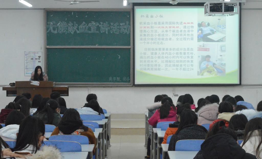 为普及献血知识、提高同学们的献血积极性,1月14日,365英国上市于长清湖校区文渊楼C区335教室召开无偿献血宣讲会,无偿献血宣讲志愿者吴茜担任主讲人。365英国上市百余名同学积极到场参加活动。