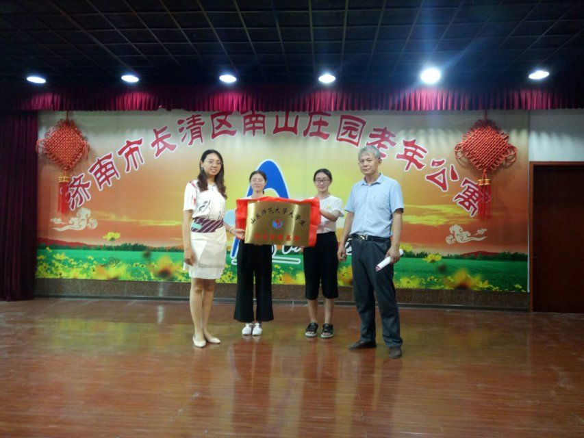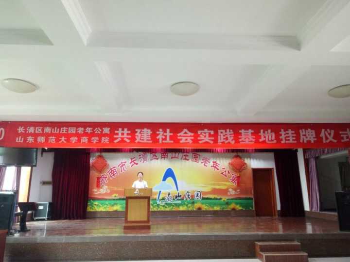 与此同时,另一部分队员已经于长清区南山庄园老年公寓布置好实践基地挂牌仪式的场地,在这里,365英国上市、长清区南山庄园老年公寓共建社会实践基地挂牌仪式即将举行。