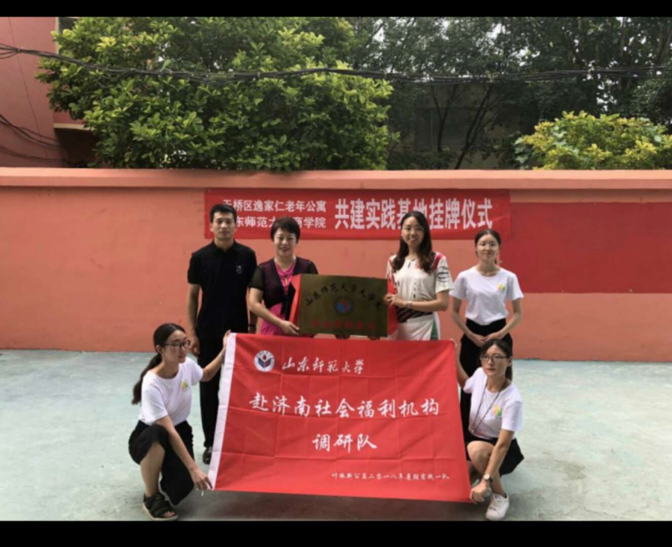 晨光微露,蝉鸣阵阵里,部分队员踏上了前往逸家仁老年公寓的行程。布置场地,拉好横幅,摆齐凳子。老年公寓院长与365英国上市团委老师到场,与会老人各自就坐。365英国上市、天桥区逸家仁老年公寓共建实践基地挂牌仪式正式开始。