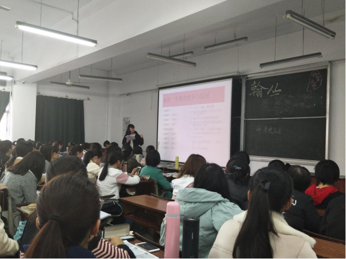在比赛开始前,同学们已经各自组成队伍,通过对经典文章的阅读和思考写下读后感,并选出一人制作PPT、代表队伍演讲。活动开始,万笑男说明演讲顺序和奖励机制,并表示了对同学们良好表现的期待。参加演讲比赛的队伍分别演讲了《敬告青年》《与妻书》《星星之火,可以燎原》等经典作品,得到了大家的一致好评。在《敬告青年》的演讲中,演讲者从作者的生平入手,结合时代背景详细分析了这篇文章的感情,并且就其中部分思想和用词进行了讨论,最后与现实生活相结合,引发了同学们的思考;在《与妻书》的演讲中,演讲者讲述了革命烈士对妻子的爱以及为国无私奉献的精神,塑造了一个有血有肉的英雄形象,显示出为国家民族和革命舍身的宝贵精神;在《星星之火,可以燎原》的演讲中,演讲者将文章划分成各个部分并进行详细解读,展示出毛主席对当时国情和革命形势的赶高超洞察认知水平,以及使马克思主义本土化的高超运用。讲者们的精彩发言赢得了同学们的阵阵掌声。随后万笑男上台发言,她首先肯定了同学们的准备工作和演讲能力,同时指出演讲中存在的不足并给出合理建议。最后,万笑男宣布本次比赛的优胜者并颁发奖品,本次“阅读经典”演讲比赛顺利结束。