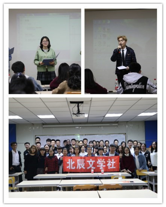 在比赛开始之前,观众及选手们共同欣赏了北辰文学社的宣传片,深入了解其特色活动及活动意义。紧接着主持人上台,对大家的的到来表示热烈欢迎,并向在座同学们介绍了此次比赛的评委。随后策划部部长李静上台介绍了比赛规则和评分标准,祝愿同学们能够取得一个好成绩。本次比赛共分三组进行,每组结束后由评委们进行现场点评和打分,最终根据分数评出一二三等奖、优秀奖、最佳风采奖以及参与奖。比赛开始,参赛选手依次上台朗诵《祖国啊,我亲爱的祖国》《致橡树》《热爱生命》《命运与挑战》《送给天堂的孩子》《声声慢》《诗经·节南山》等经典作品,评委们对每位选手的朗诵表示支持和鼓励,同时又针对他们各自存在的问题提出建议和方法,希望下一次可以得到改进。评委们的精彩点评得到选手和观众们的一致认可。365英国上市学生会主席张光亮、网络宣传委员会主席丁明浩临时观看了本次朗诵比赛,本次诵读会还成功邀请到非洲留学生Badru,他认真欣赏每一位同学的表演并且为获得参与奖的选手们颁奖。朗诵环节结束后,在场同学们一同观看了北辰文学社前期的活动花絮,对文学社的活动有了更进一步的了解。经过反复计分和核对,主持人最终宣布获奖选手名单并举行了颁奖仪式。在颁奖仪式结束后,参与本次活动的同学们合影留念,本次朗诵会圆满结束。