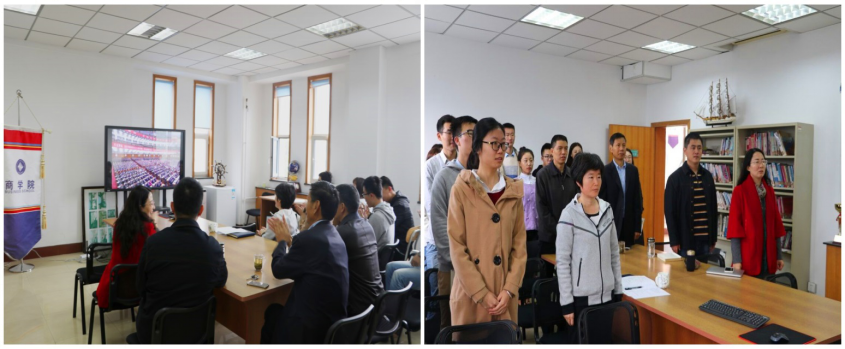会议直播开始,在刘长伦书记与陈钊书记的带领下,全体人员热烈鼓掌,欢迎习近平总书记及党中央各位领导入场就坐,并跟随会议进程,全体起立与现场一同奏唱国歌。在为已故老一辈无产阶级革命家和革命先烈默哀后,全员认真听取了习近平总书记代表党的第十八届中央委员会所发表的《不忘初心,牢记使命,高举中国特色社会主义伟大旗帜,决胜全面建成小康社会,夺取新时代中国特色社会主义伟大胜利,为实现中华民族伟大复兴的中国梦不懈奋斗》的工作报告。收看现场,大家专心致志、聚精会神地聆听习近平总书记所作报告要点,认真记录报告中的重要内容和观点。其中,习近平总书记关于“中国特色社会主义进入新时代”的重大论断和社会主要矛盾已经转化的重大判断引起强烈反响,习近平总书记的报告中关于教育的内容更是引发在场全体人员的深入思考与热烈讨论。开幕式结束后,观看人员纷纷表示,习近平总书记的报告集中了全党智慧,凝聚了各方共识,顺应了时代潮流,反映了人民心声,主题突出,内容精彩,催人奋进,令人鼓舞。