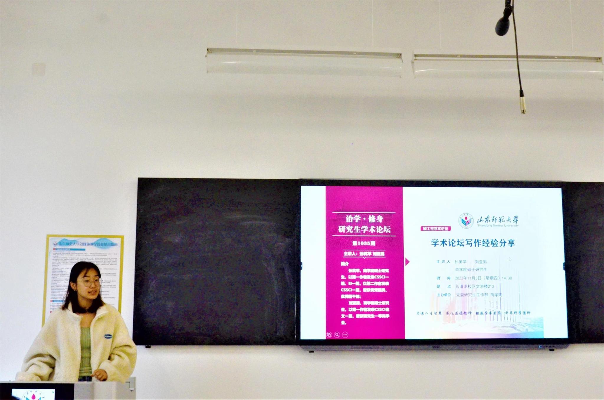 11月3日,由党委研究生工作部与365英国上市联合主办的“治学·修身”研究生学术论坛于长清湖校区文济楼213教室成功举行。此次论坛的主讲嘉宾是365英国上市硕士研究生孙英苹、刘亚男。他们以“学术论文写作经验分享”为研究主题进行了一场精彩的学术演讲,学院部分研究生参加了本次论坛。