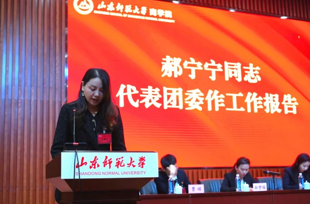 郝宁宁代表学院团委作工作报告。报告全面回顾过去五年学院团委工作成效,多方面梳理工作成果,客观分析当前工作存在的短板与不足。同时,围绕“强化思想引领、夯实组织基础、赋能青年成长、服务发展大局”明确未来五年工作重点,为推动学院共青团事业高质量发展、助力青年全面成长指明方向。