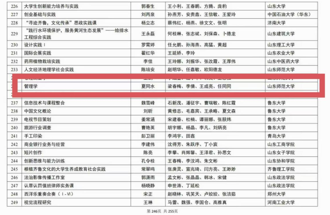 近日,教育部公布第三批国家级一流本科课程认定结果,学校共有19门课程入选,我院3门课程成功入选。其中,孙凤芝教授团队的《洞穴旅游景区绿色开发设计虚拟仿真实验》课程入选虚拟仿真实验教学一流课程、李斐斐副教授团队的《市场营销学》课程入选线上线下混合式一流课程、夏同水教授团队的《管理学》课程入选社会实践一流课程。
