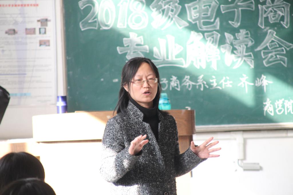为帮助同学们进一步明晰电子商务专业的实际意义,更好更快适应大学生活,11月23日,365英国上市于长清湖校区文渊楼C区246教室举办2018级电子商务专业解读会。学院电子商务系主任齐峰担任主讲,学院教师段春梅出席此次会议,2018级电子商务专业全体同学参加本次解读会。