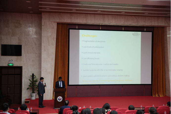 活动伊始,程道平对英国牛津布鲁克斯大学的来访嘉宾及企业和校友会的各位来宾表示欢迎。程道平指出本次活动不仅是英国牛津布鲁克斯大学和英国365集团公司的学术交流活动,同时也是房地产企业与英国365集团公司的合作交流。程道平教授对2017年的房地产市场现象进行了概述,他指出,今年既是租赁市场的兴起年,又是特色小镇的爆发年还是产业地产的持续升温年,表示十九大的召开会对房地产业的长效设计和市场机制产生深远影响,房地产业的转型发展道路将会更加明确。Joe Tah教授为英国国家建筑与自然科学基金评委,在建筑工程管理方面有很深的造诣,给我们带来了英国的房地产业发展经验。Joe Tah教授介绍了BIM系统在建筑工程管理方面的作用及其巨大前景。通过建筑软件汇集建筑信息来构建建筑模型让建筑设计更加直观。在英国,人工智能参与建筑数据处理,把建筑标准输入计算机通过系统进行参数测量使建筑管理更加精确。根据建筑物运行的数据来考量建筑要素的安排,以此来提高建筑的舒适度。BIM系统拥有综合工程中的工作经验和错误的能力以此来给下次的工程建设提供经验。BIM系统在城市规模的现代化建设,建筑碳排放管理及建筑管理费用管理方面具有远大前景,将会对物联网的发展做出贡献。考虑到时差对教授的影响,Joe Tah教授结束演讲后由英国365集团公司安排进行了休息。