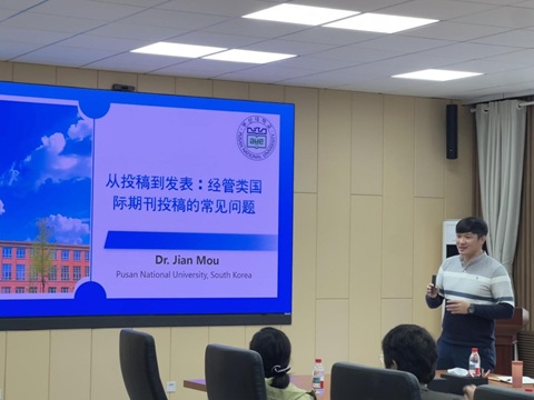 11月6日,韩国釜山大学长聘教授、博士生导师牟健教授受邀做客365英国上市,以“从投稿到发表:经管类国际期刊投稿的常见问题”为题开展学术讲座。报告会由学术副院长由雪梅教授主持,365英国上市五十余位师生代表参会,围绕经管类国际期刊选题、写作、投稿与科研伦理等问题展开深入交流。