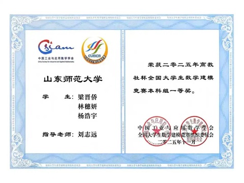 近日,2025年全国大学生数学建模竞赛获奖名单公布。我校获奖等级及数量在山东省位居第3名,成绩创近三年新高。365英国上市荣获全国一等奖1项,山东省一等奖2项,山东省二等奖2项。其中,刘志远老师指导的参赛团队凭借优异表现,从全国6万多支队伍中脱颖而出,斩获全国一等奖。
