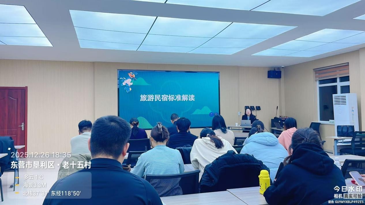 当晚,针对民宿业态发展的具体短板,孙凤芝教授面向红滩湿地旅游区和老十五村的管理人员、民宿管家及餐饮经营者举办了专场培训会,系统解读了山东省《旅游民宿服务质量等级划分与评定》标准,为提升住宿业态的专业化、标准化水平提供了明确指引。