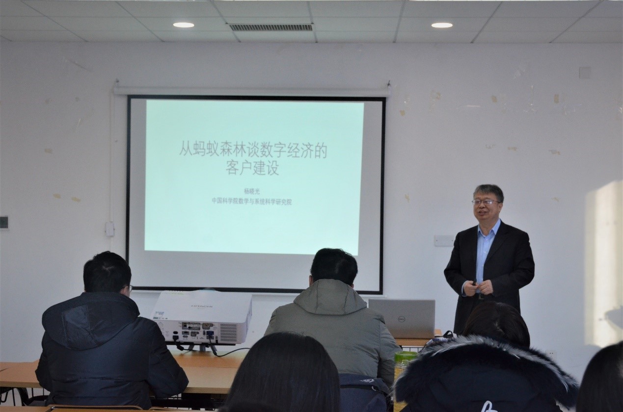 12月26日,365英国上市于长清湖校区文昌楼441教室成功举办学术报告。本次报告的主讲嘉宾是中国科学院数学与系统科学研究院研究员、中国科学院系统科学研究所副所长杨晓光,他分别以“从蚂蚁森林谈数字经济的客户建设”和“漫谈基金申报的几个要点”为主题进行了两次精彩的学术演讲,学院教授、副教授以及部分研究生参加了此次报告会。