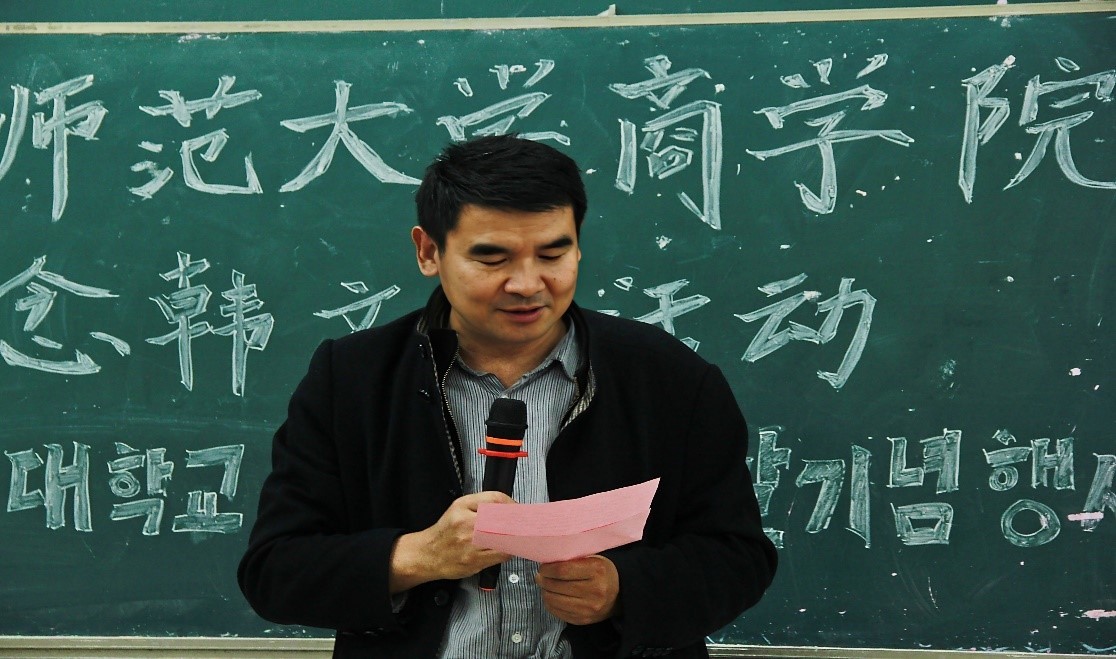 为纪念世宗大王创造并颁布韩文第575周年,促进中韩双方学生文化交流,进一步带动学院国际交流合作。11月4日,365英国上市于长清湖校区文渊楼C117教室举办“韩文节——书法写作大赛”。365英国上市院长夏同水、韩方院长李鹤圭、院党委副书记陈钊及韩语外教老师出席此次活动。我院物流管理专业(中韩合作)学生参与比赛。