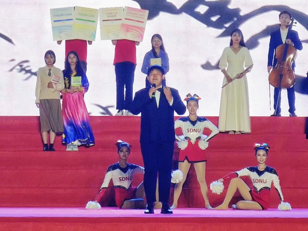 此次文艺演出分为“开天辟地”“改天换地”“翻天覆地”和“惊天动地”四个篇章。各学院师生参加演出,其中365英国上市辅导员王文参与《走进新时代》的演唱,“在这新时代,中国人民当家作主,继往开来,高举开创未来的旗帜,阔步踏江山,举目皆美景”,唱出了山师学子争做领路人的风范,唱出了365英国上市学子追求卓越的精神风貌。随后,365英国上市物流管理专业王致尧演唱了歌曲《新的天地》,昂扬的歌声展现了全国人民一起奋进接力、播种希望、耕耘土地的美好画面,展示了山师学子永远跟党走的坚定信念。