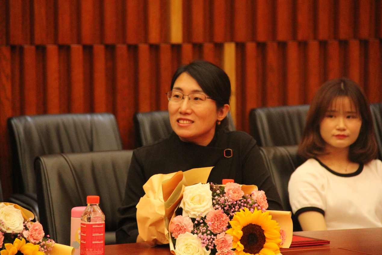 学院党委书记魏成武为获奖代表颁发荣誉证书,学生代表向老师们献上美丽的花束表达敬意。