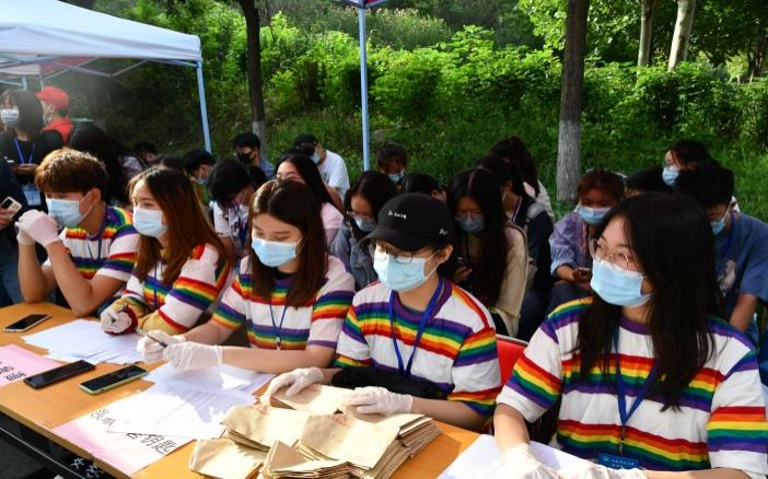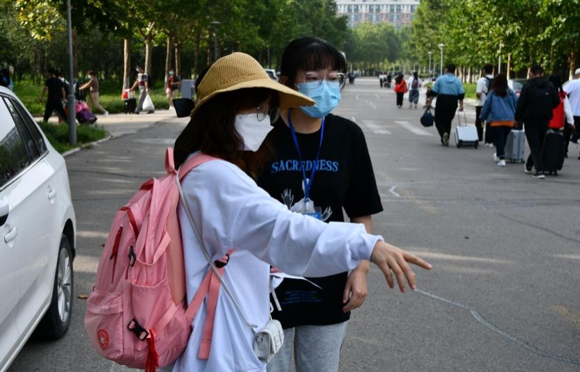9月5日,全体省内新生按规定到校,迎新活动顺利进行。新生到达学校门口后,志愿者将其引导至文渊楼A区,并与报到处志愿者进行交接。引导过程中志愿者同学与新生及其家长热情地交谈,解答学习、生活等方面的疑惑。