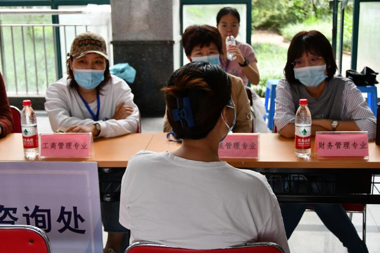 新生到达A区后,在工作人员引导下完成学费查询、文件收取、一卡通领取等报到流程。在报到处,学院工作人员认真询问新生信息情况,确保个人信息准确无误。此外,报到处现场还设置了家长休息区与专业咨询区,志愿者们在新生报到期间为家长提供座椅、矿泉水,并尽可能地帮助学生和家长解答专业学习方面的疑惑。