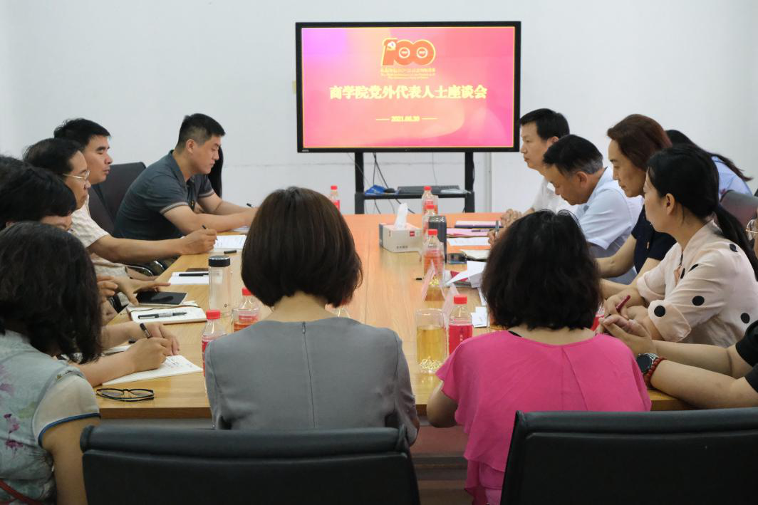 与会党外代表人士夏同水、刘丽娜、程道平、梁春梅、徐红、谢孝娟、潘华丽、李建春、田瑞岩、王鑫、于维娜、张建萍等先后发言,热烈祝贺中国共产党成立100周年,感谢学校、学院党组织对民主党派和党外知识分子工作、学习、和生活的关心,表达了拥护中国共产党领导,立足党派实际,积极建言献策,努力为学校事业发展做贡献的决心。