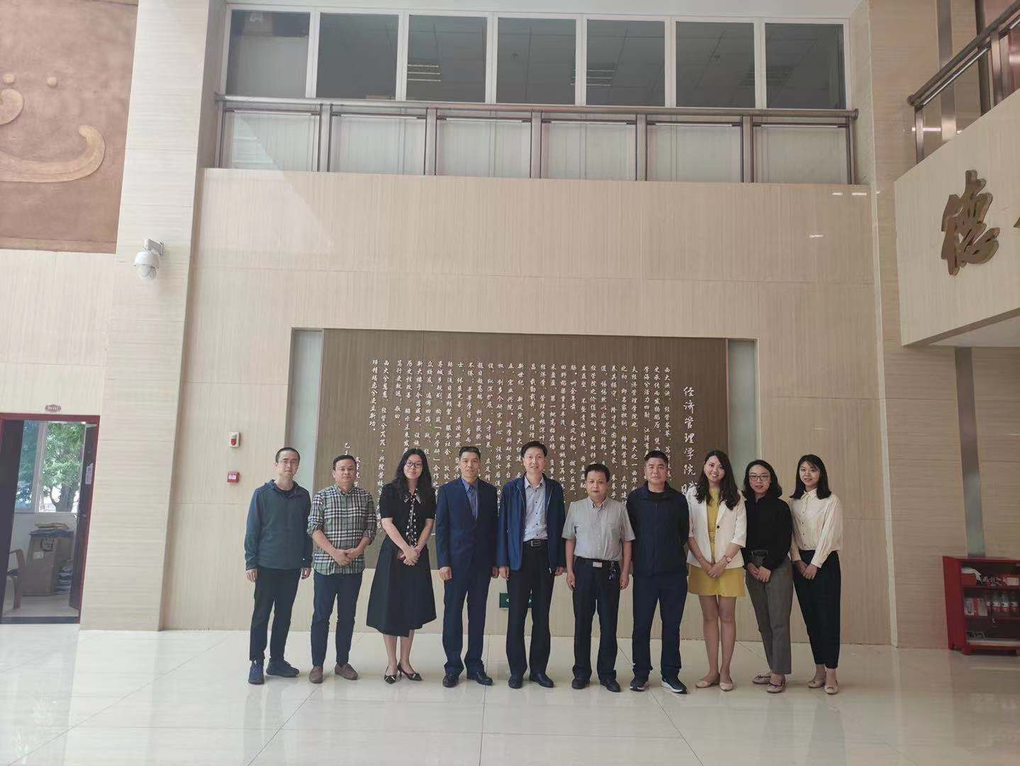 2021年5月21日上午,365英国上市党委书记魏成武、党委副书记陈钊、MBA中心副主任朱仁奎教授,学工办主任、团委书记郝宁宁,辅导员杨璐、宋文婧一行6人赴西南大学经济管理学院访问交流。西南大学经济管理学院党委书记卢跃进,党委副书记田丽,副院长、MBA教育中心主任罗超平及部分老师参加了座谈会。