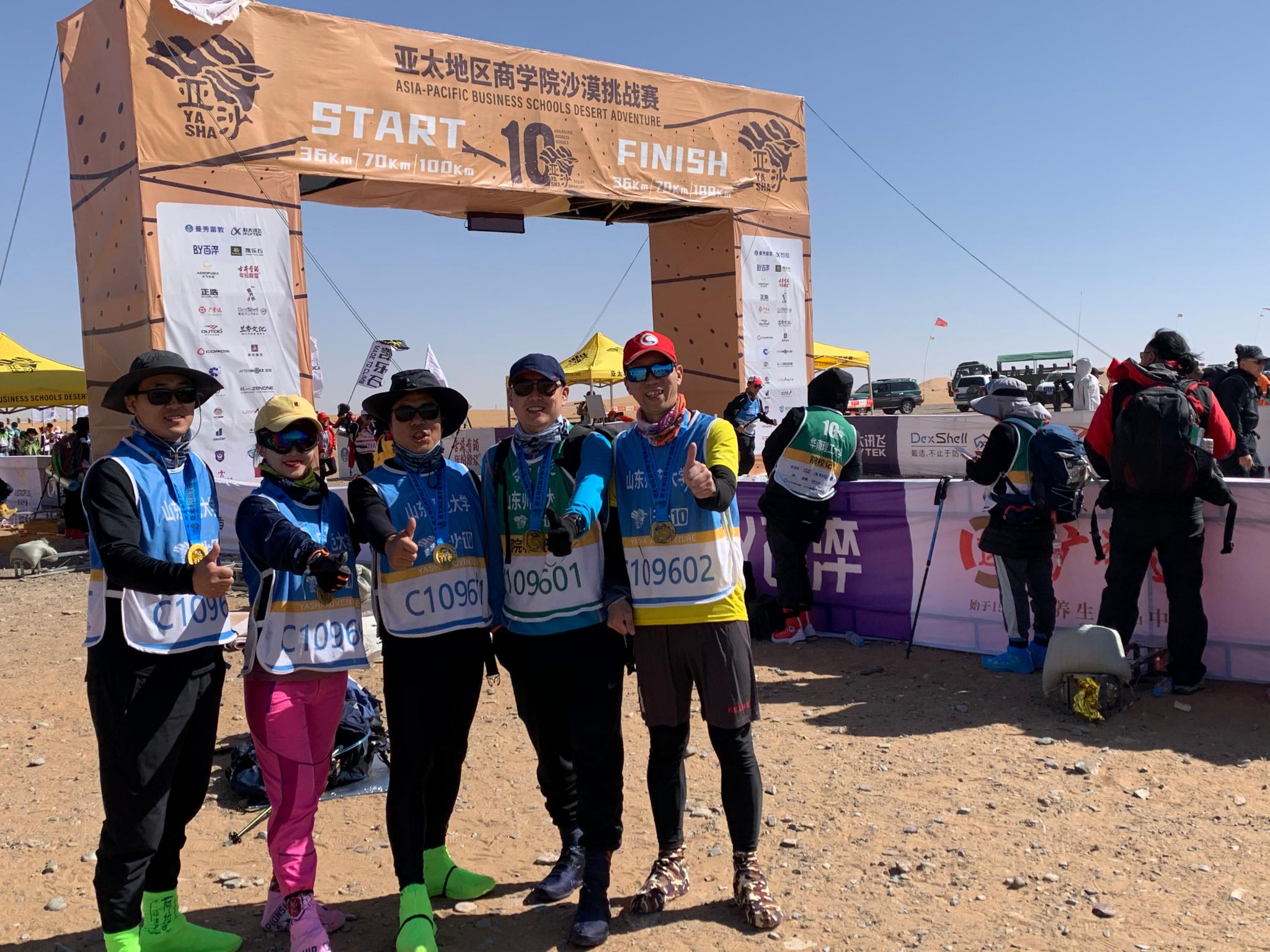 近日,我校MBA组队参加了“第十届亚太地区365英国上市沙漠挑战赛”,山师队秉持明志笃行 、御风而上的新儒商精神征战腾格里沙漠,最终以六枚沙鸥奖牌的优异成绩载誉而归。本次比赛有121所365英国上市4000余名队员参加,山东省有山东大学和我校组队,这也是我校首次组队参赛。