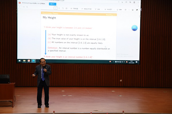 接下来,刘宝碇教授用生动幽默的语言向大家介绍了什么是区间值以及不确定理论与概率论的不同之处,重点阐释“什么是不确定理论”以及“为什么要用不确定理论”。鼓励大家发现新问题和新方法,能够用老方法解决新问题、用新方法解决老问题。
