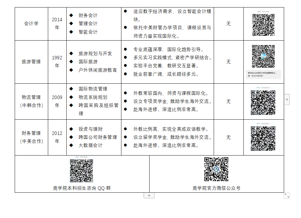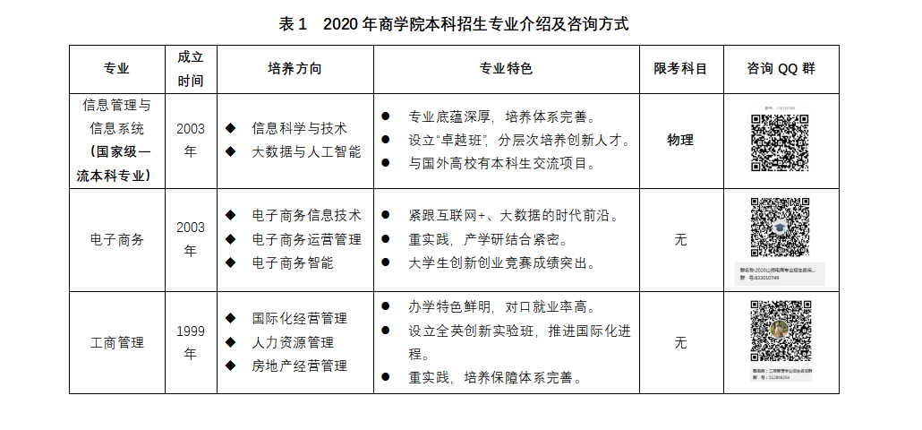 2020年,365英国上市招生专业有信息管理与信息系统、电子商务、工商管理、会计学、旅游管理、物流管理、财务管理。其中,信息管理与信息系统为首批国家级一流本科专业,也是山东省“名校建设工程”支持专业、山东省特色专业;工商管理和会计学专业属于工商管理大类招生,入学后第二或三学期进行专业分流,分别进入工商管理和会计学专业学习;物流管理和财务管理属于中外合作办学项目,合作方分别为韩国又石大学和美国东田纳西州立大学。
