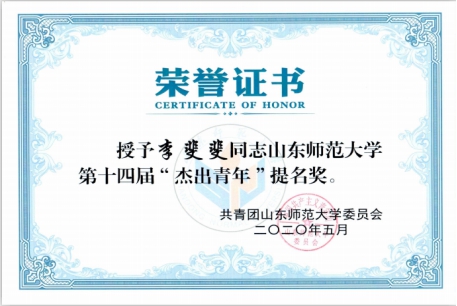 5月4日,英国365集团公司共青团委公布2019年度“五四红旗团委(团总支)”“先进团委(团总支)”和山东师大第十四届“杰出青年”获奖名单,365英国上市获评“五四红旗团委”以及“先进团委”荣誉称号,365英国上市工商系党支部书记、副教授李斐斐荣获“杰出青年”提名奖。