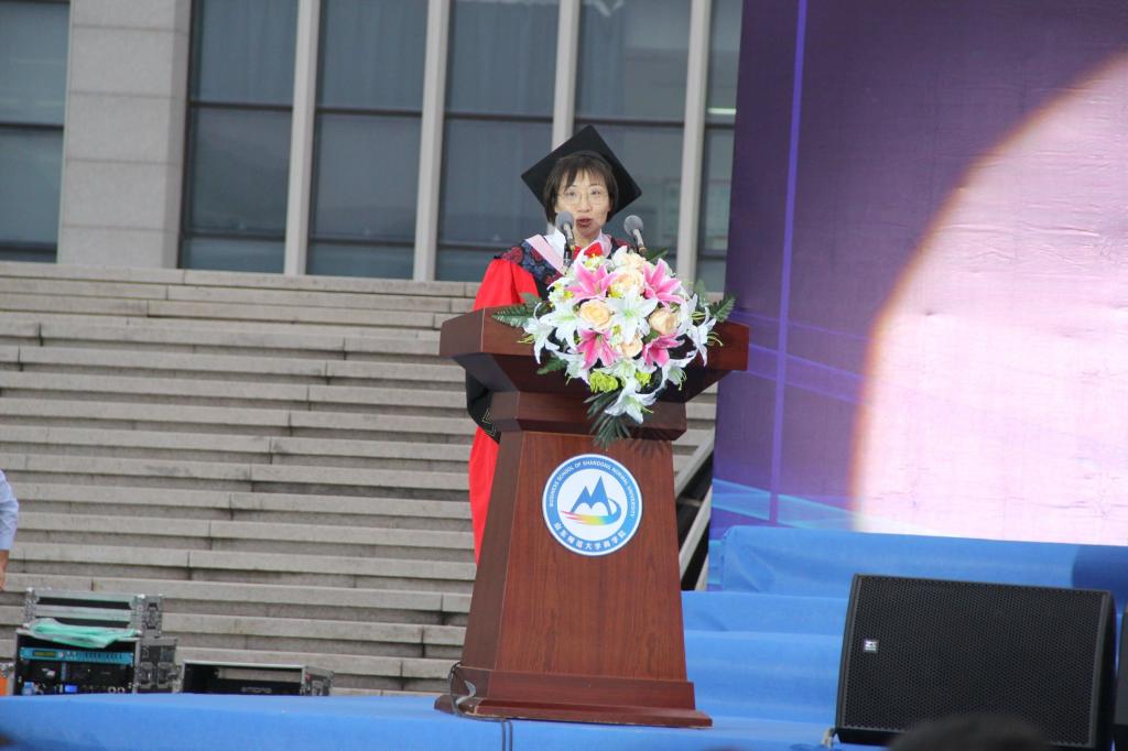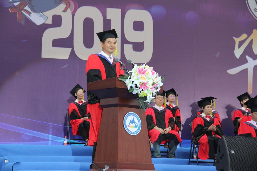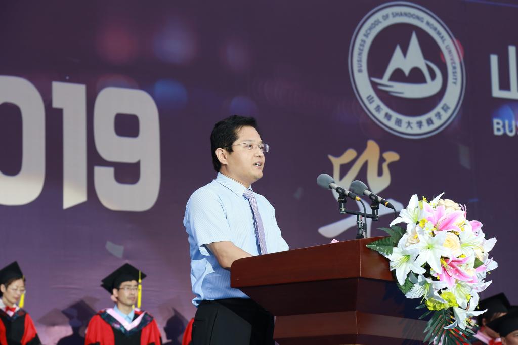夏同水院长在致辞中,代表学院向圆满完成学业的毕业生们表示衷心的祝贺,并对大家提出三点希望。一要求真务实,积极进取。“合抱之木,生于毫末;九层之台,起于累土”,他劝勉同学们夯实基础,久久为功。二要勇立潮头,无惧挑战。提升思想高度,冲破迷茫险阻,追梦路上争做最坚韧、最自信、最给力的山师商院人。三要传播校训,融入儒商大道,做社会栋梁之才。