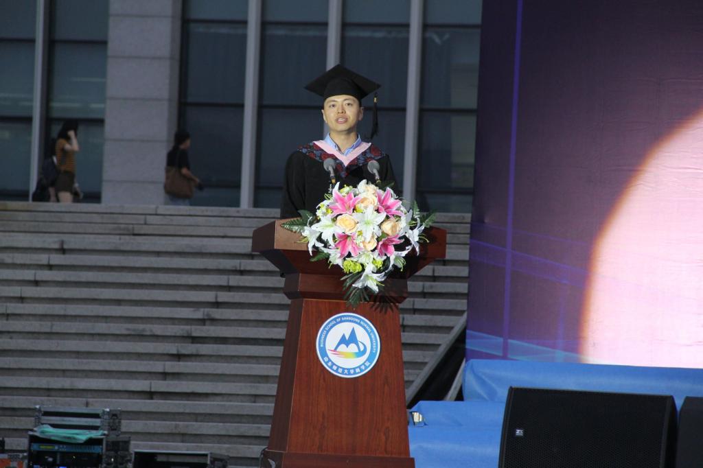 毕业生代表朱鸿昌同学作了发言。他与同学们分享自己的成长之路,感恩老师挚友关怀。他表示2019届全体毕业生将会牢记“弘德明志,博学笃行”校训,带着老师的叮嘱和期望再次启航,开拓属于自己的新天地。