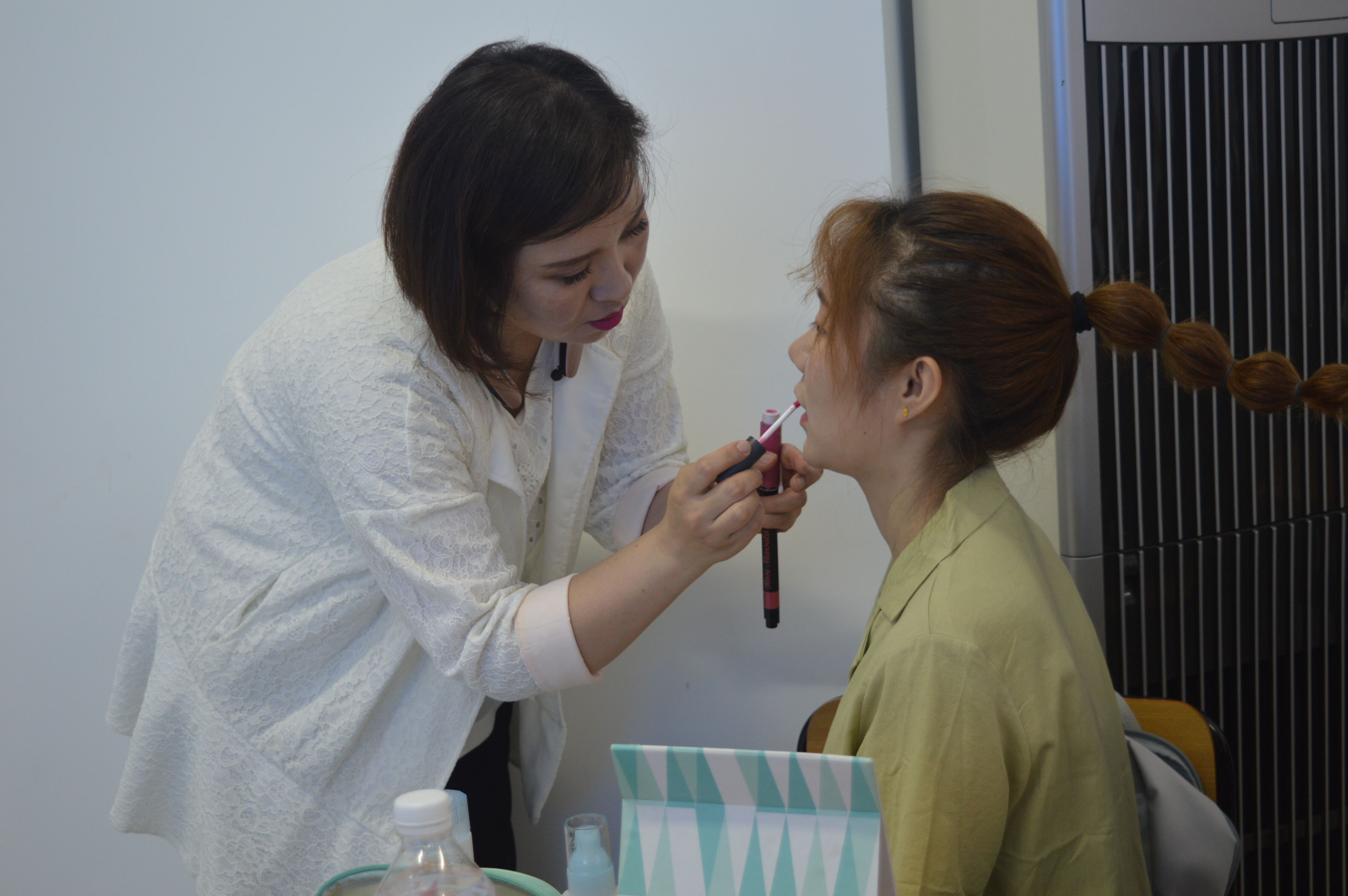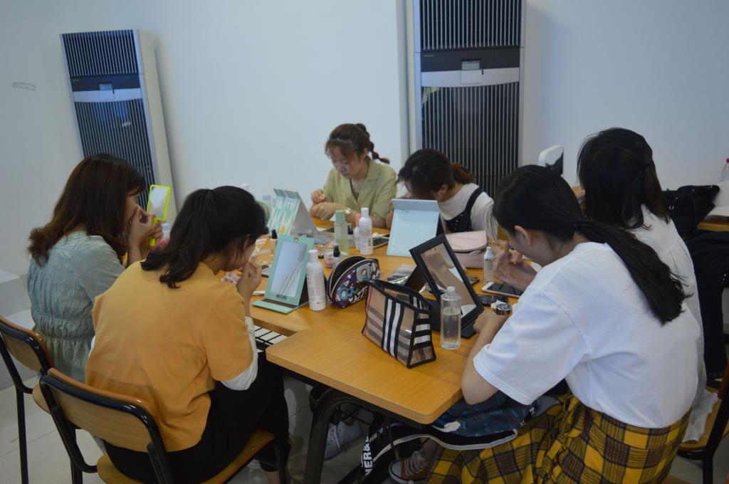 活动伊始,崔恩京首先结合精心准备的PPT课件为同学们介绍不同年代的妆容特点以及普及日常护理知识和基本化妆技巧,通过列举不同脸型与妆容的对应关系进一步介绍美妆,帮助同学们寻找合适的风格和妆容。接着,崔恩京为同学们现场演示韩式妆容的基本化妆方法,并按照化妆步骤指导同学,她着重强调化妆品的使用方式、合理用量及妆容的色彩搭配,在练习化妆的过程中与同学们亲切交流,并亲自为初次学习美妆的同学化妆,同学们积极配合,现场气氛十分活跃。与此同时,崔恩京还详细讲解了一些关于眉毛、眼影、腮红的画法以及实用有效的化妆窍门,她指出,同学们不仅要熟练掌握化妆技巧,更要学会结合自身因素调整妆容,以达到更好的化妆效果。美妆讲堂将理论知识和实际操作结合,进一步使化妆丰富化、细致化,活动中同学纷纷表示受益匪浅。活动最后,崔恩京为参与讲堂的同学精心准备了礼物,并与学院老师同学合影留念,至此,此次活动圆满结束。