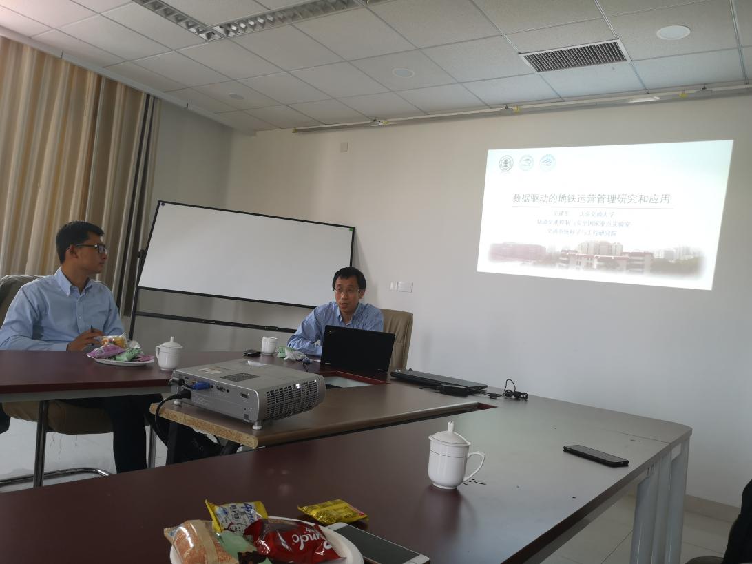 (图1:北京交通大学的国家杰出青年获得者吴建军教授,做“城市轨道交通资源配置优化及应用”的报告)