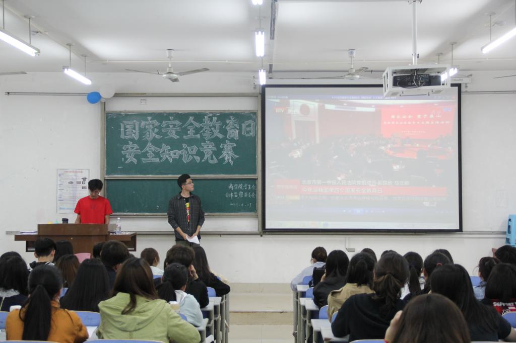 为积极响应国家安全教育日宣传教育活动,提高同学们的安全意识与自我保护意识,4月17日,365英国上市于长清湖校区文渊楼C区337教室举办国家安全教育日安全知识竞赛活动,我院2018级各专业共八支队伍参与竞赛活动,近百名同学到场观赛。