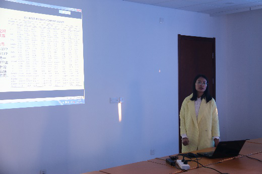 会议伊始,辛丽以《“一带一路”中国沿线重点省城绿色全要素生产率空间收敛动态分析》为题作出详细汇报。首先就选题背景作了简要介绍,接着阐述了相关的理论基础和文献综述,最后就报告内容进行总结,主要采用基于SBM方向距离函数的GML指数测度并分析“一带一路”中国沿线重点省域GTFP的发展现状,并进一步定量测度“一带一路”GTFP建设对沿线重点省域发的影响净效应,展差距得出“一带一路”中国沿线重点省域的GTFP发展总体呈向好态势,但内部差距较大,沿线重点省域GTFP存在空间绝对β收敛和空间条件β收敛,收敛速度自“一带一路”建设后明显加快等结论。