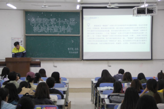 本次宣讲会的成功举办,使同学们对"挑战杯"全国大学生系列科技学术竞赛的基本情况有了更加深入的了解,对于激发同学们参赛的热情、信心具有重要作用。同时对学院在各类创新创业大赛中争优创先铺垫道路,对于学院学风建设具有积极意义。