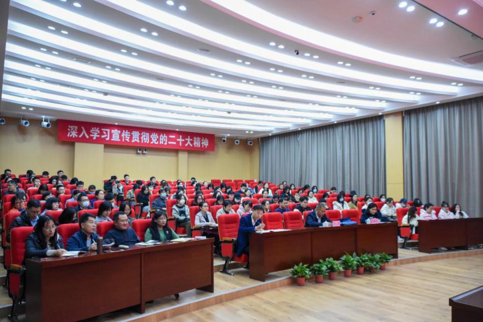 孔祥荣教授从“中国式现代化的目标导向”“中国式现代化的战略部署”“中国式现代化的根本保证”三个方面,结合党的二十大的主题、主线、主要成果、重大意义进行深入阐释,回顾了过去5年党和国家事业取得的举世瞩目的重大成就,新时代10年的伟大变革及里程碑意义。孔教授指出,实现中国式现代化,必须牢牢把握坚持和加强党的全面领导、坚持中国特色社会主义道路、坚持以人民为中心的发展思想、坚持深化改革开放、坚持发扬斗争精神五大原则,把高质量发展放在自己力量的基点上。阐明了教育、科技、人才对于全面建设社会主义现代化国家的基础性、战略性支撑作用。整个报告主题鲜明、思路清晰、内容丰富,与师生问答互动,情理交融、说理透彻,受到师生欢迎。