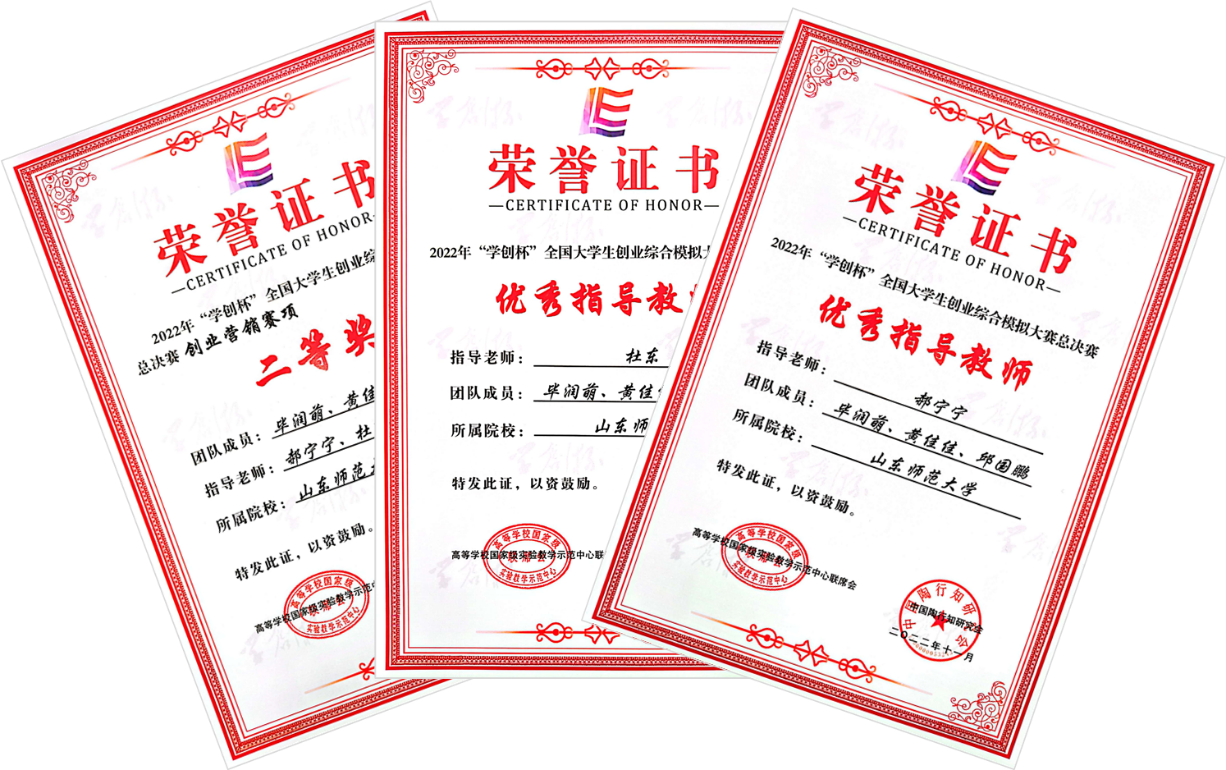 “学创杯”大学生创业综合模拟大赛是中国高等教育学会《高校竞赛评估与管理体系研究》确定的A类赛事。大赛旨在培养学生创新创业思维和创业经营分析决策实战能力学习、获得深刻的创新创业实战经验,激发学生探索创新精神、团队协作的精神。本次赛事我校学子参与营销专项赛道,整个决赛分为四个季度,每个季度的评分标准有三项,分别是:盈利表现、市场表现和成长表现,取最后一个季度的综合成绩排名作为最终的排名。根据疫情防控需要,本次国赛采用线上全程监控的方式举行,来自1458所高校的30余万师生在“云端”展开了对决。备赛期间,杜东、郝宁宁作为指导教师,时刻关注比赛信息,全程跟进团队动态,进行多方面指导。毕润萌、黄佳佳、邱国鹏认真备赛,积极配合,克难奋进,根据市场上瞬息万变的情况进行快速的判断,不断调整营销策略,进一步改良产品,使自己企业的盈利水平稳步提升,企业不断成长壮大,在激烈的比赛中脱颖而出,取得佳绩。