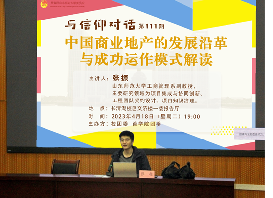4月18日,校团委与365英国上市团委联合举办的“中国商业地产发展沿革与成功运作模式解读”主题讲座于长清湖校区文济楼126报告厅开展。本次讲座由365英国上市工商管理系副教授张振主讲,365英国上市近百名师生积极参与。