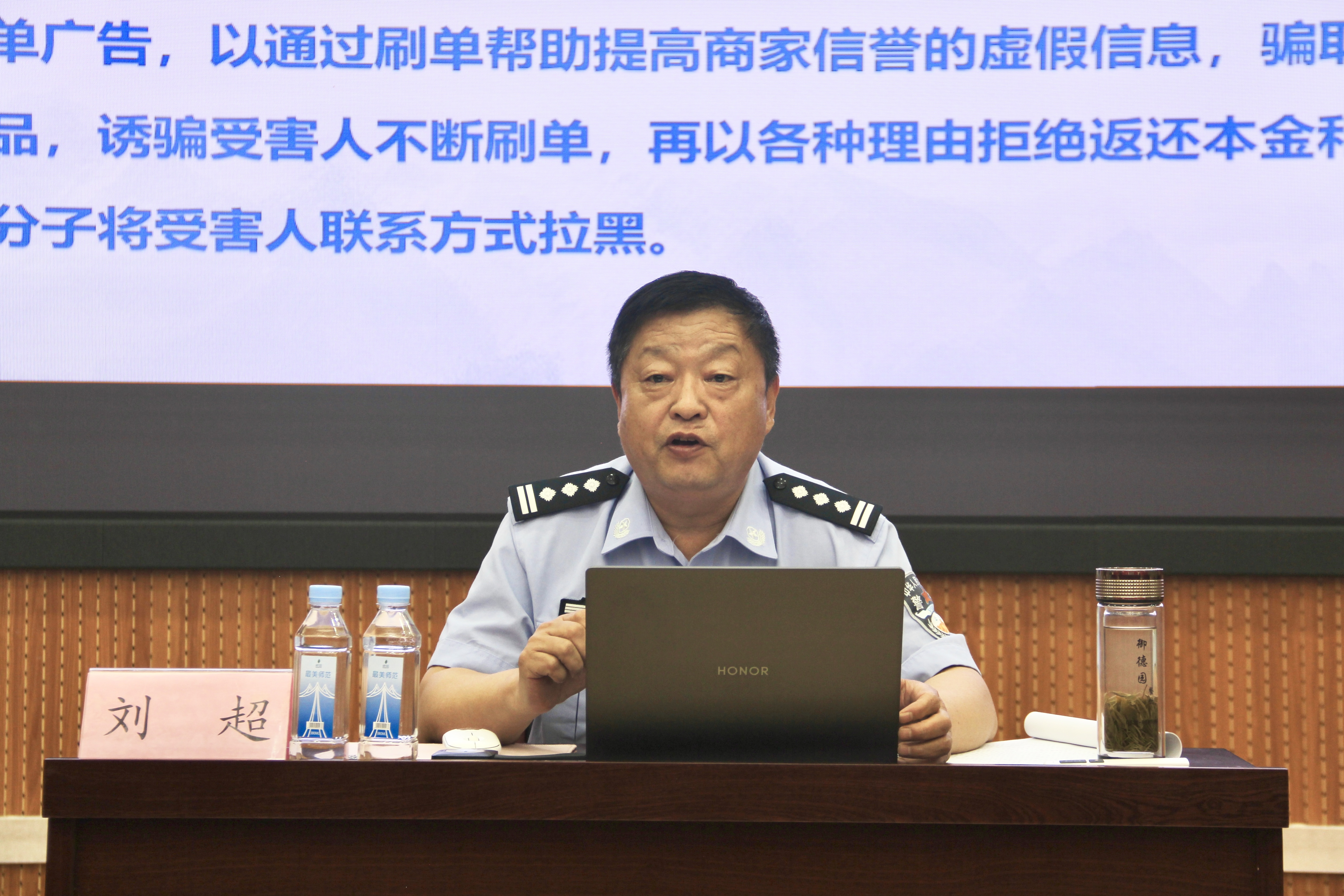 为加强学生自我防范和反诈意识,创建平安校园,5月16日下午,365英国上市于126报告厅举办“警校携手,共创平安校园”防诈骗专题讲座。本次讲座邀请到济南市长清公安分局驻山师高级警长刘超担任主讲人,由辅导员周晓雨主持, 2023级全体学生到场聆听。