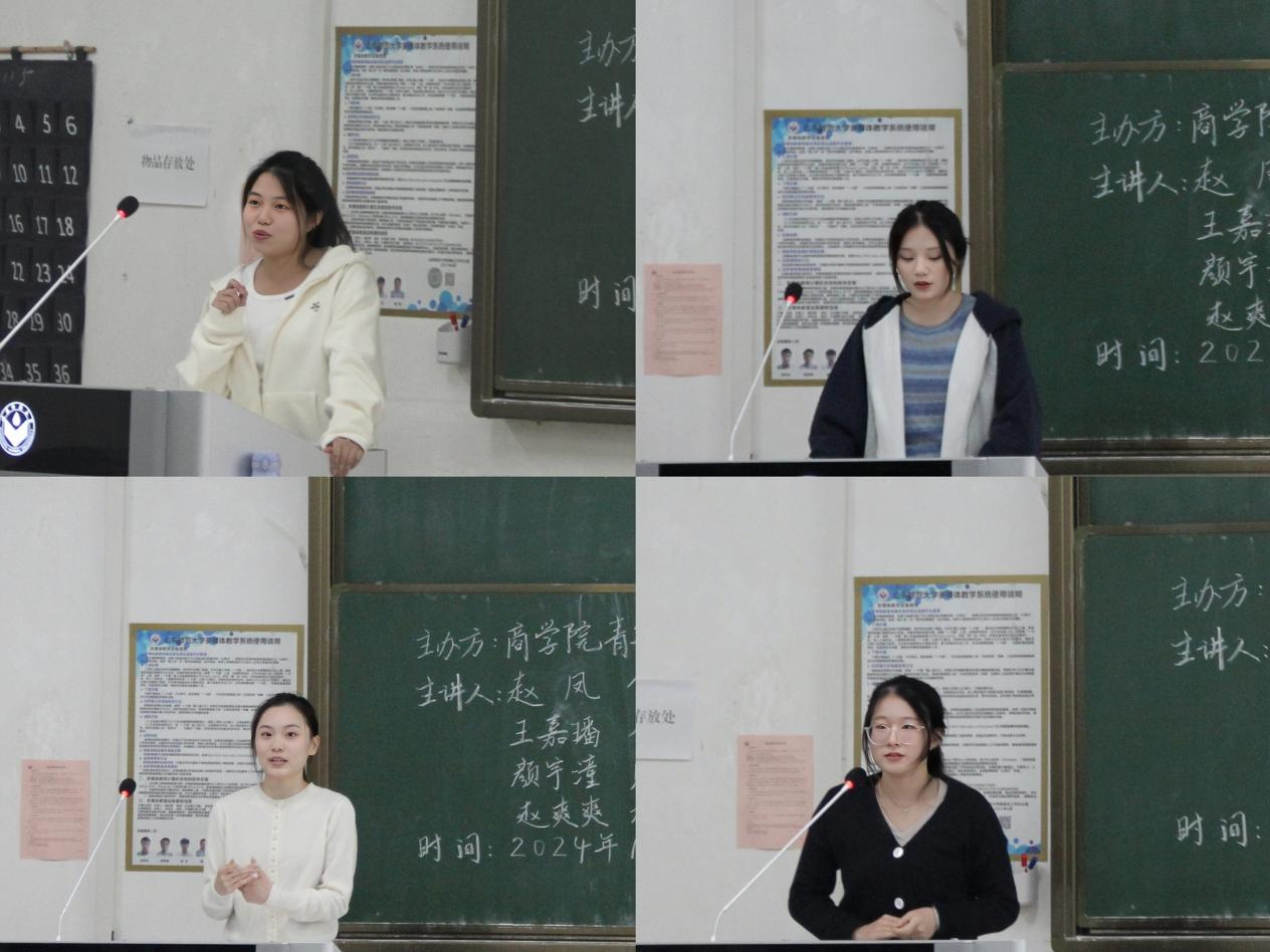 本次交流会主要围绕学习、竞赛、科研及社会实践四方面展开。首先,赵凤详细介绍了各类竞赛的特点和参赛要求。她提到,竞赛不仅是对专业知识的检验,更是对创新能力和团队协作能力的综合考验;王嘉璠详细阐述了论文撰写的五步流程,即选导师、定选题、阅文献、拟框架、填内容及降重。同时,她鼓励同学们应勇于探索未知,以“凡心所向,素履以往”的态度积极面向未来;颜宇潼则重点分享了她在竞赛与论文写作中遇到的挑战及应对策略,激励同学们在逆境中坚持不懈,永不言败;赵爽爽就项目孵化、团队建设、商业计划书撰写、项目ppt、项目路演这五个方面讲述了自己参赛时所积累的经验,并从赛前准备、赛中应对以及赛后总结三个阶段为同学们提出了详细的备赛建议。