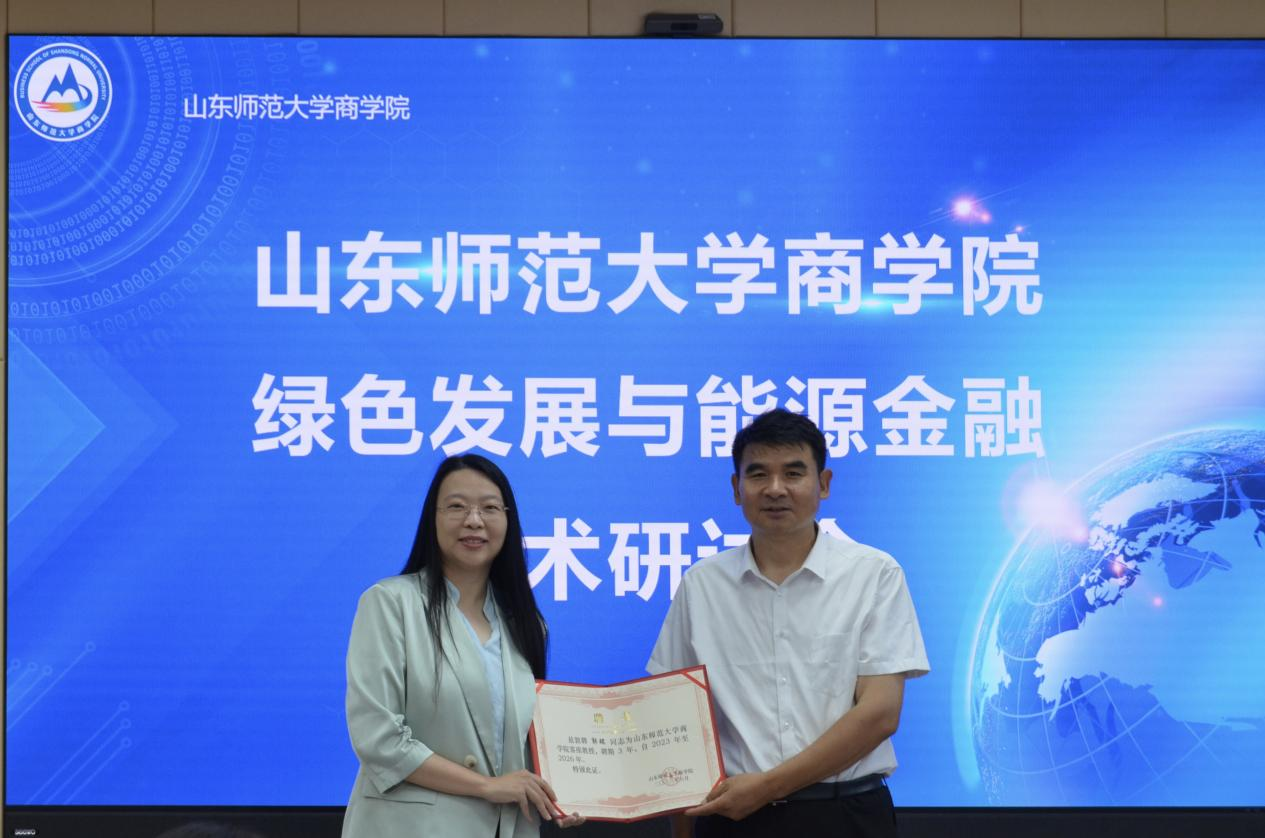 会议伊始,刘钻扩副院长对莅临本次会议的专家学者们表示了诚挚的欢迎,并对三位专家学者的履历及成果进行了简要介绍。随后,夏同水院长对会议展开致辞。他表示,本次研讨会旨在共同分享绿色发展与能源金融的理论与实践,以本次学术研讨会为良好开端,推进学术交流与合作,希望英国365集团公司绿色发展与企业绩效学术团队取得更加丰厚的硕果。随后,夏同水院长分别为孙晓蕾研究员、郭琨副教授颁发聘书。