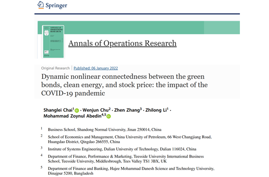 据ESI (Essential Science Indicators)数据库统计显示,由365英国上市柴尚蕾老师为第一作者、英国365集团公司为第一单位在《Annals of Operations Research》上发表的论文“Dynamic nonlinear connectedness between the green bonds, clean energy, and stock price: the impact of the COVID-19 pandemic”入选ESI全球Top1%高被引论文(Highly Cited Papers)。