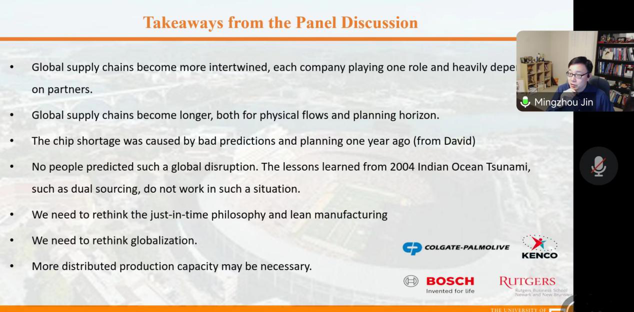MIngzhou JIN教授的发言主题是“Scheduling, Modeling and Design of 3D AS/RS Systems”。他基于起重机角度对三维AS/RS检索任务调度进行了解读。MIngzhou JIN教授介绍说,传统的AS/RS中,单是通道就占用了35%的土地空地。因此,他着重关注具体AS/RS的运行和系统性能分析,建立了考虑多个AS/RS选项的仓库设计优化模型,成功提高了仓库系统的响应性、成本效益和灵活性。
