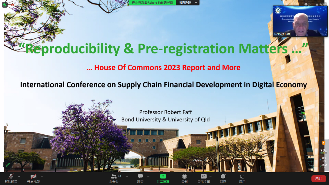 Robert Faff教授就“Pre-registered Research Matters”展开研讨。他构建了一个关于预注册倡议的理论框架,通过实证分析对PBFJ的预注册倡议展开案例研究。接着,他指出了InSPiR2eS Centre for Responsible Science(IC4RS)的正面效应并表达了对其实现在全球范围内为偏远与资源不足的地区提供研究培训和能力建设基本愿景的认可。他表示,IC4RS符合当下金融领域的推动力要求。