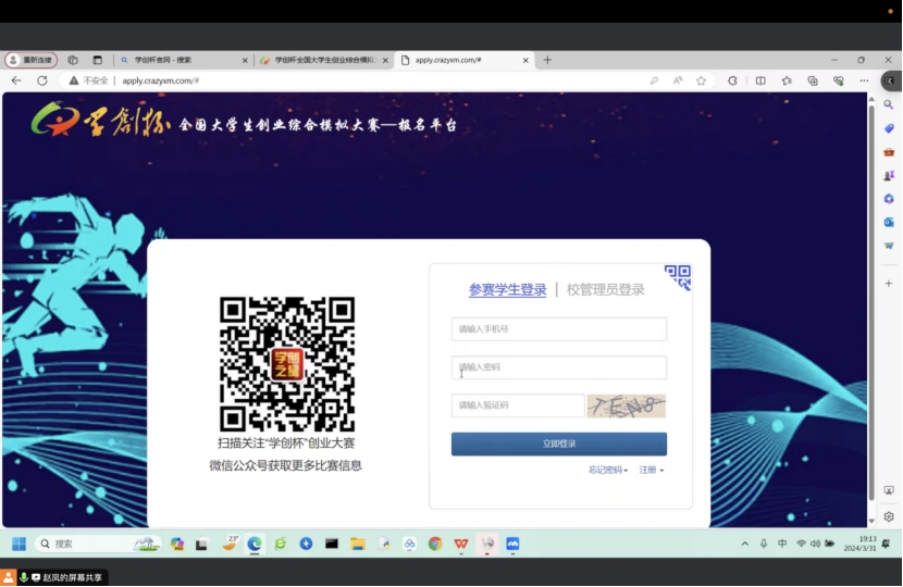 赵凤以“2024新跨越、新起航”为主题要点,就第十一届“学创杯”全国大学生创业综合模拟大赛切入,围绕赛事介绍、组队讲解、选拔方式、平台使用、集思答疑五环节展开,详细阐述了与学创杯有关的创新创业核心理念与实践方法,并通过实践操练在学创杯大赛专用平台上对包括参赛信息注册、活动报名、客户端下载、系统使用、小组管理在内的比赛操作流程进行全方位地讲解。结合自身参赛经验,她分别就如何进行队伍组建、课题选择、需要做的准备工作、后续面临的问题及解决方法等方面为同学们答疑解惑,激励学生踊跃投身创新创业实践。