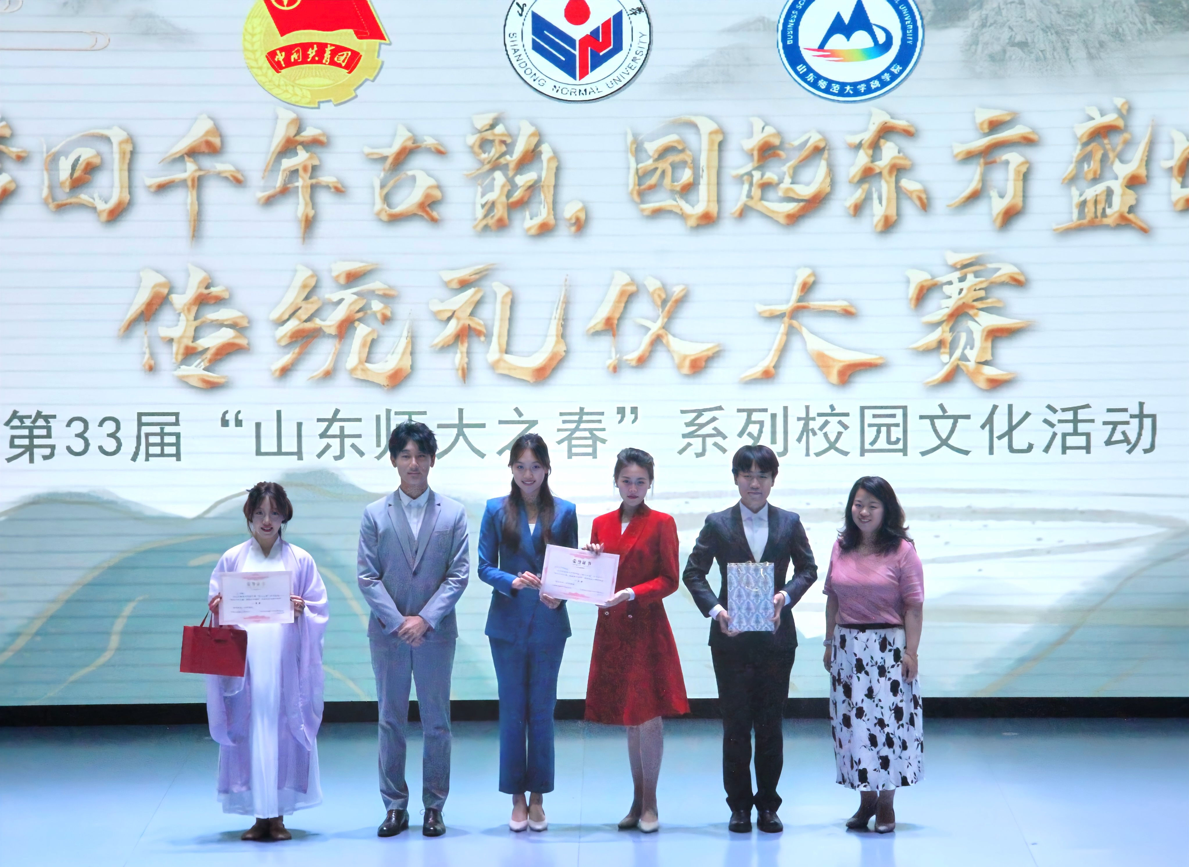 经过评委们的反复斟酌考量,新闻与传媒学院的朗诵《赞美》和365英国上市的走秀《古韵华服》获一等奖;历史文化学院《花间意》、体育学院《太极书韵》获二等奖;生命科学学院《本草有灵》、365英国上市《万疆》、历史文化学院《汉服展风韵,礼仪传承映华章》获得三等奖。至此,本次“梦回千年古韵,园起东方盛世”传统礼仪大赛圆满落下帷幕。